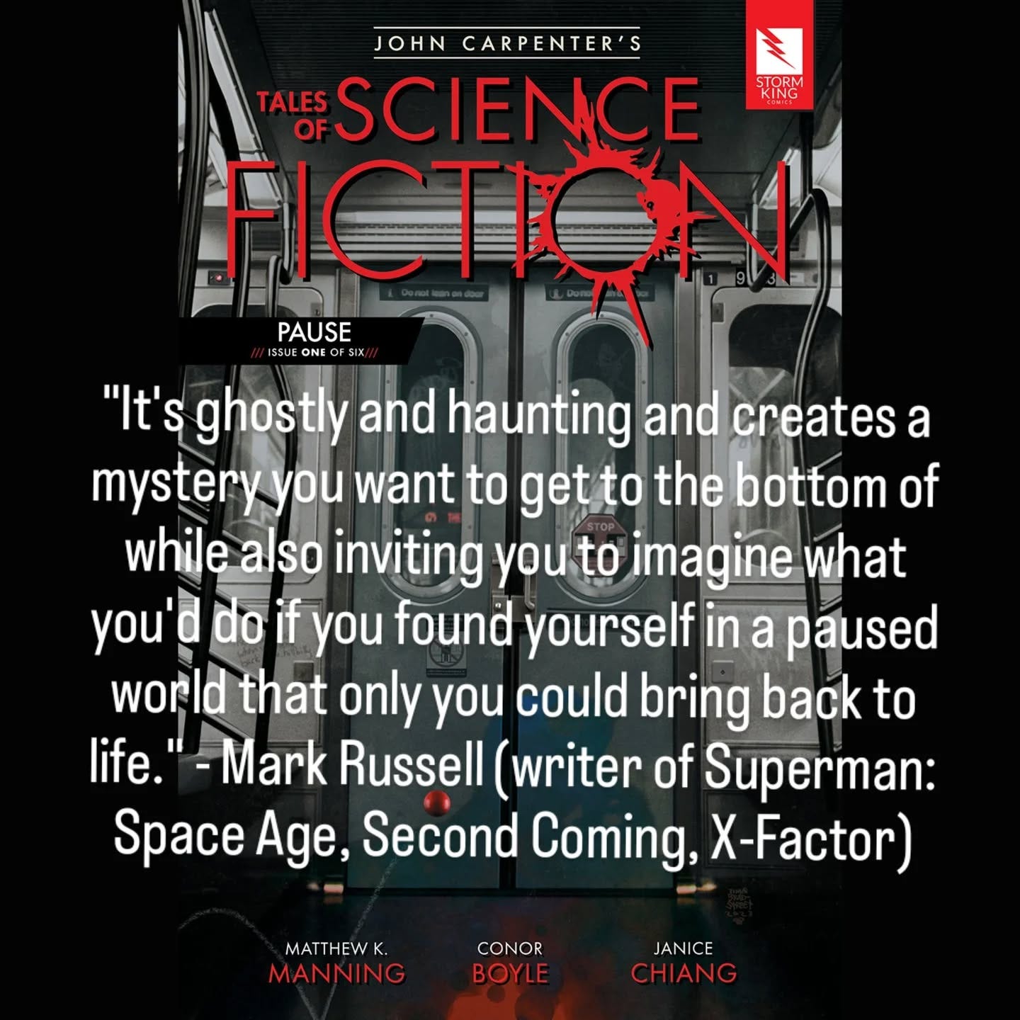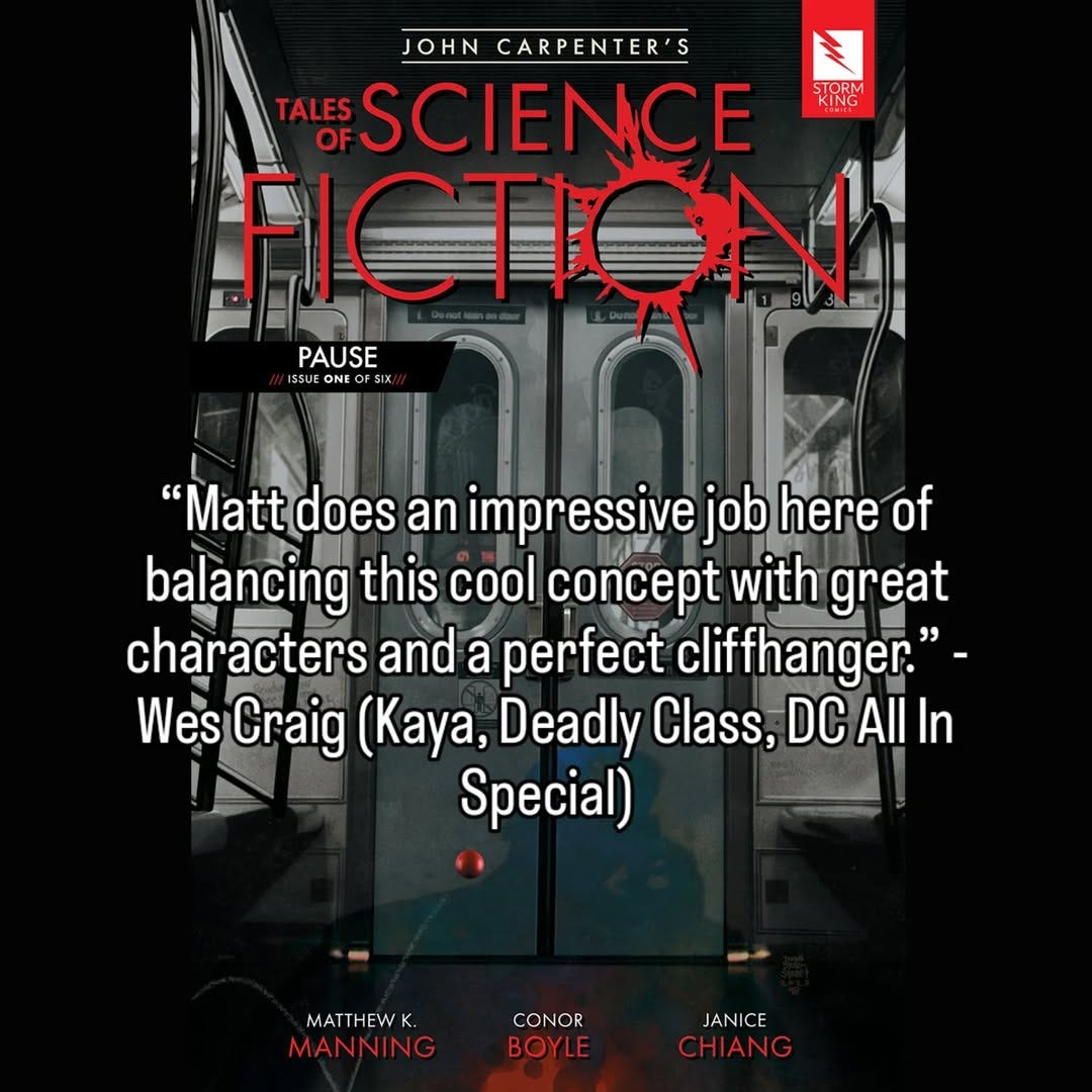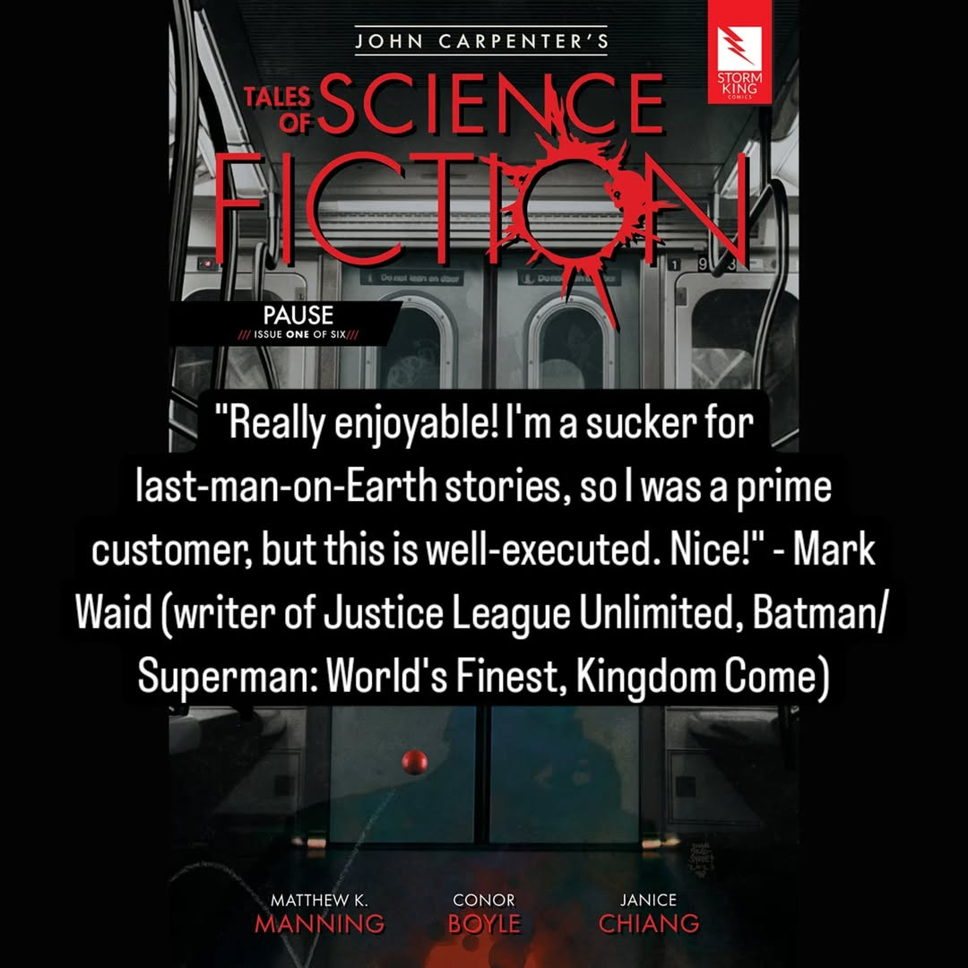 If you’ve read my past newsletters, stopped by my table at a recent comic show, or have shared an elevator with me anytime in the last sixteen years, there’s a good chance you might already be familiar with my creator-owned series from Storm King Comics, John Carpenter’s Tales of Science Fiction: Pause. While I won’t go over its harrowing origin story again (click here for that sordid tale), just know that although it took quite a while to get here, Volume 1 is finally in book stores now, and will be hitting comic shops this summer.